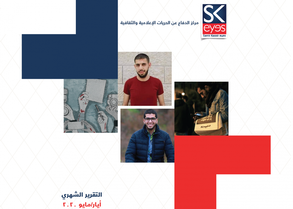 استمرّت الاعتداءات بحق الصحافيين والمصوّرين في لبنان ولا سيّما خلال تغطيتهم التظاهرات المطلبية خلال شهر أيار/مايو 2020، وطاولت سبعة منهم، فيما أوقف مذيع عن العمل واستُدعي صحافي وإعلامية للتحقيق على خلفية منشورات. وأوقف 68 صحافياً عن العمل في الأردن واعتُدي على مصوّر ومُنع مديرو المستشفيات من التصريح للإعلام، واعتُقل ناشطان إعلاميان في سوريا ومُنعت مراسلة من العمل شهرين بسبب منشورات أيضاً. كما اعتقلت الشرطة الإسرائيلية في أراضي الـ48 شاعرة فلسطينية وحقّقت مع صحافيَّين، فيما منَع جندي إسرائيلي طاقم قناة تلفزيونية من التصوير في الضفة الغربية التي اعتدت فيها الشرطة الفلسطينية على صحافي وأمن مقر الحكومة على آخر، وصدرت فتوى بتحريم مشاهدة قنوات عربية في قطاع غزة بحجة التطبيع واعتقل مسلّحون صحافياً بسبب فيديو. وكان لافتاً إغلاق إدارة "فايسبوك" حسابات ستة صحافيّين في المناطق الفلسطينية الثلاث بحجة عدم توافقها مع المعايير التي وضعتها.