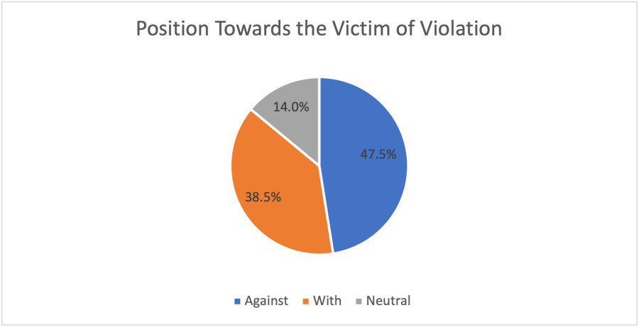 The three Hezbollah leaning accounts were against the journalist victim of violation. Similarly, the two Amal Movement leaning account were against Nasr. One of the two Lebanese Forces-leaning accounts was with the journalist. Likewise, one of the three Free Patriotic Movement-leaning accounts was with the victim of violation while the other two were against her. The only SSNP-leaning account posted content directed against Nasr.