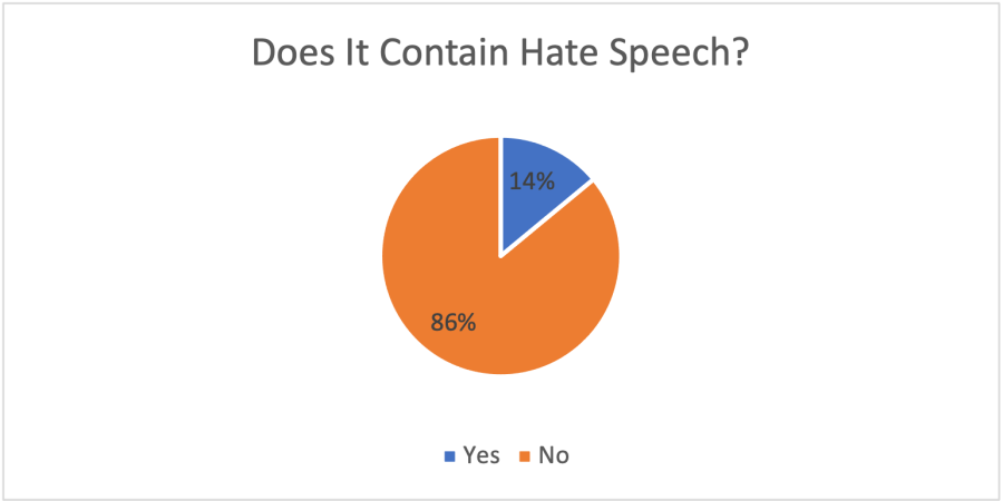 Out of the 122 analyzed accounts, 14% (17) of the users published comments that contained hate speech while 86% (105) of the accounts posted comments that did not contain hate speech.