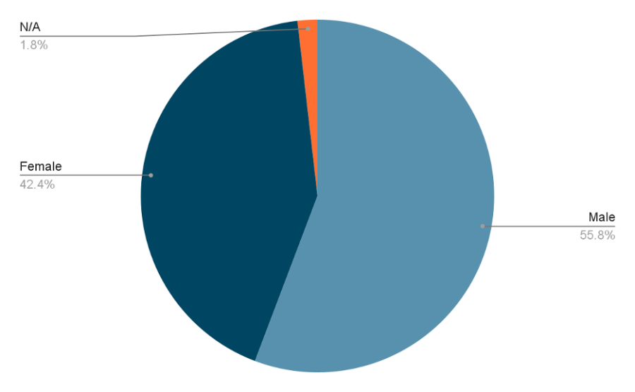 Out of the 165 analyzed accounts, 55.8% (92) were males and 42.4% (70) were females, whereas 3 accounts didn’t portray a visible gender Sixty percent (18) of the accounts that induced hate speech were from male contributors whereas 35% (7) were from accounts that identified as females.