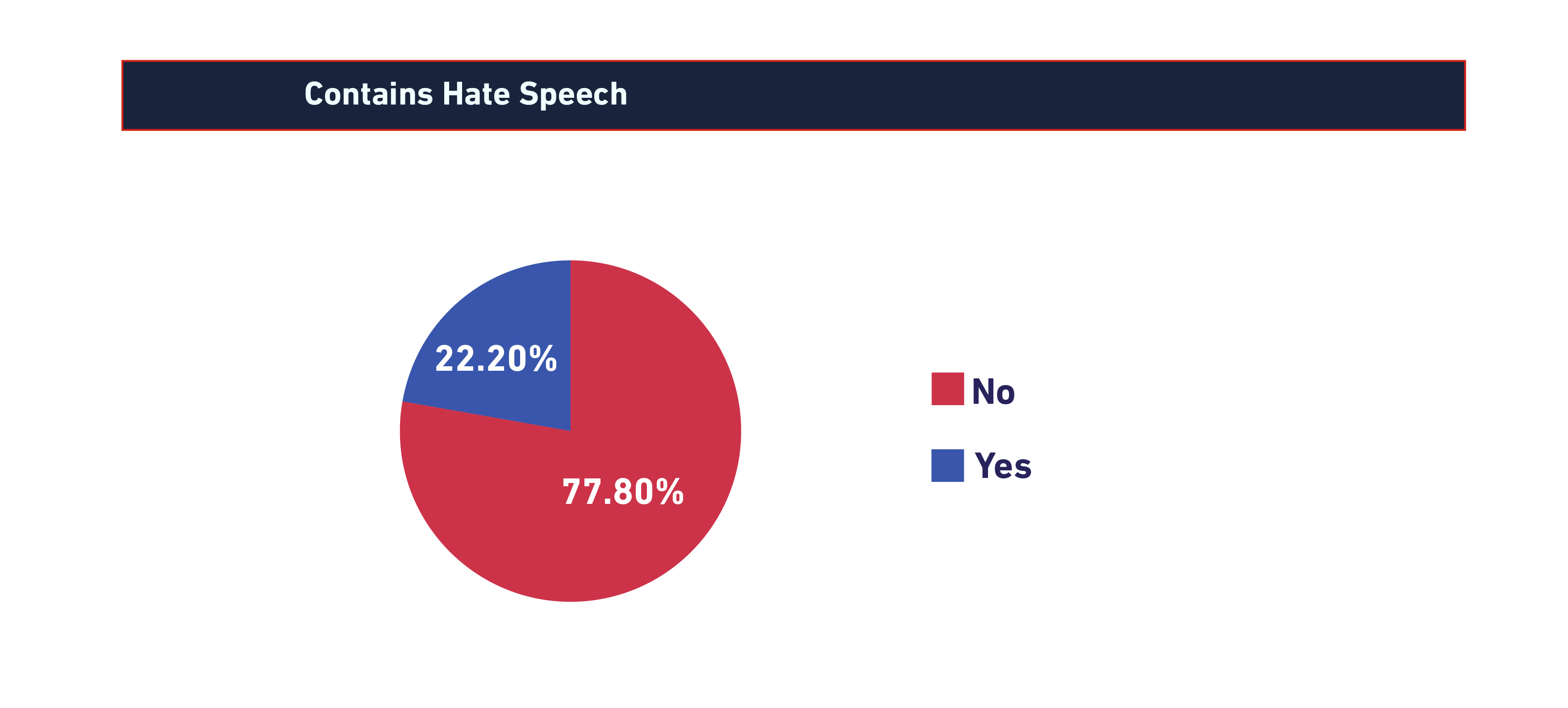 Out of the 54 analyzed accounts, 42% (12) published comments that did not contain hate speech, and 12% (42) published comments that contained hate speech.